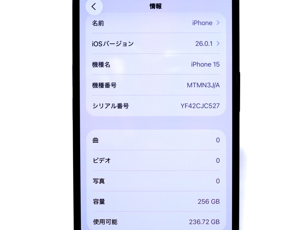 - [USED]u059643 iPhone15 256GB SIMフリー [ブラック]