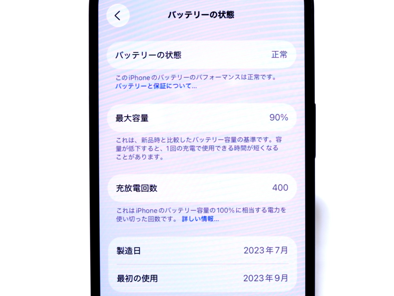 APPLE [USED]u059643 iPhone15 256GB SIMフリー [ブラック] の 商品仕様: