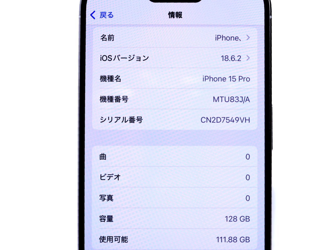 - [USED]u059656 iPhone15 Pro 128GB SIMフリー [ホワイトチタニウム]