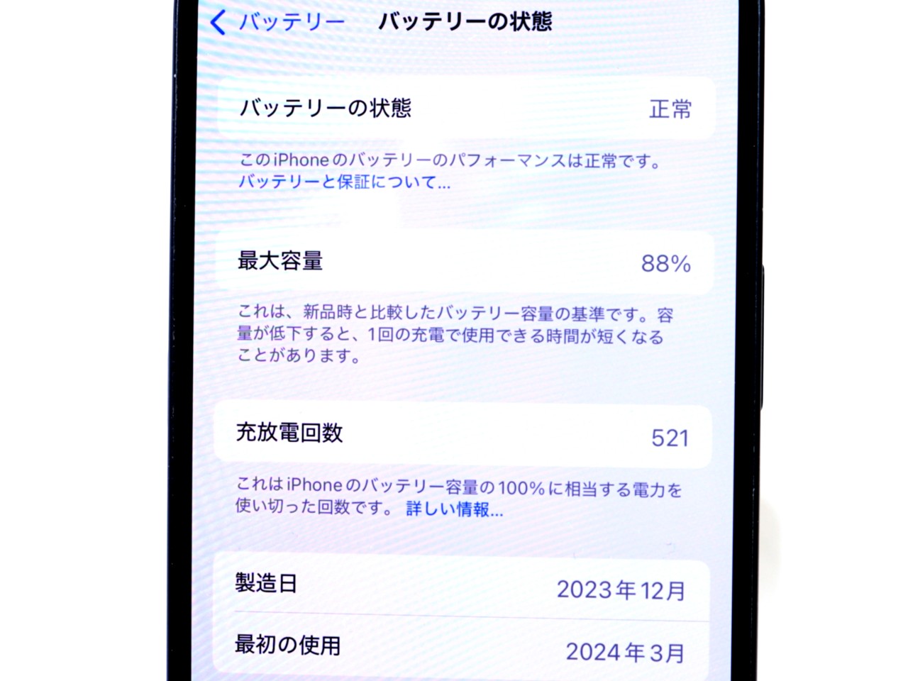 APPLE [USED]u059657 iPhone15 128GB SIMフリー [ブラック] の 商品仕様: