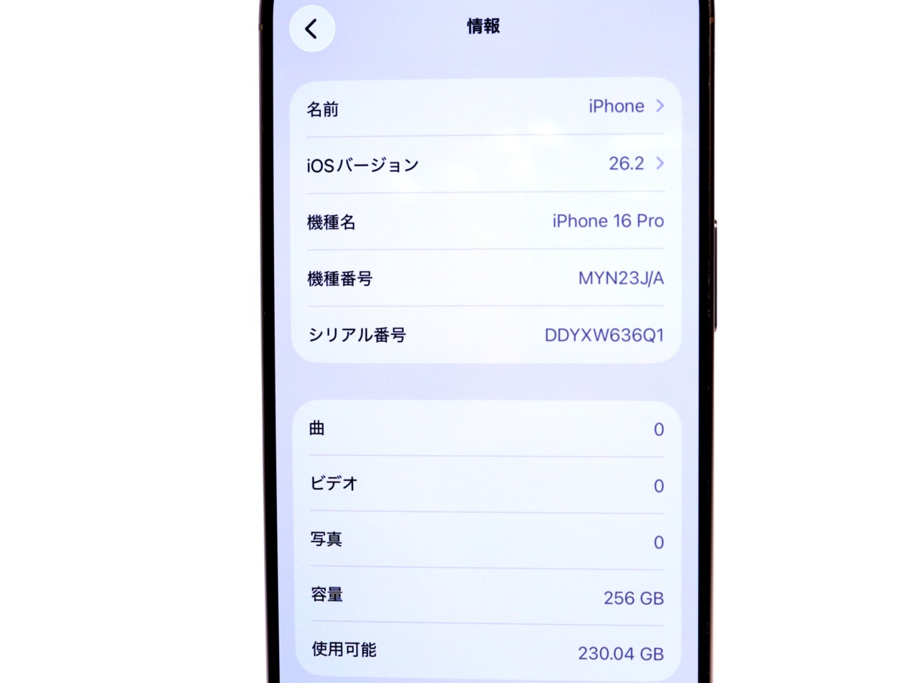 APPLE [USED]u059696 iPhone16 Pro 256GB SIMフリー [デザートチタニウム] の 商品仕様: