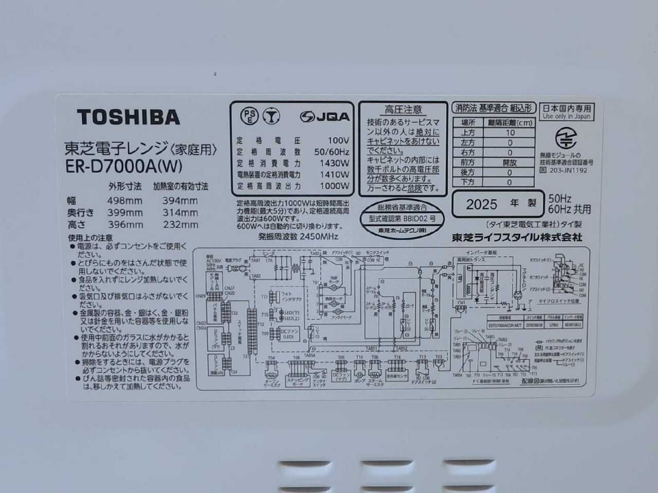 TOSHIBA [USED]u059778 ER-D7000A-W の 商品仕様: