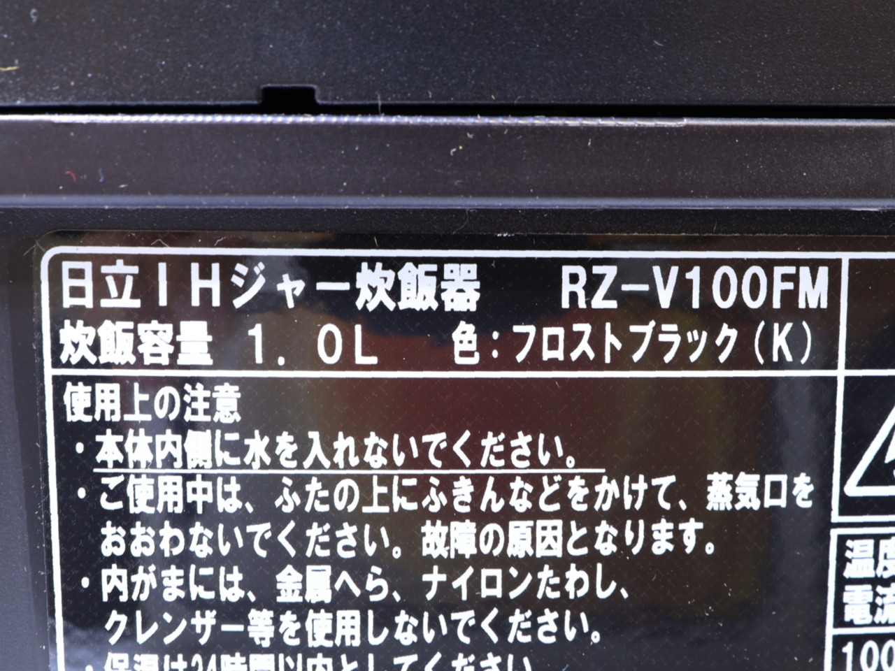 HITACHI [中古]炊飯器 沸騰鉄釜 ふっくら御膳 RZ-V100FM(K) [フロストブラック]
