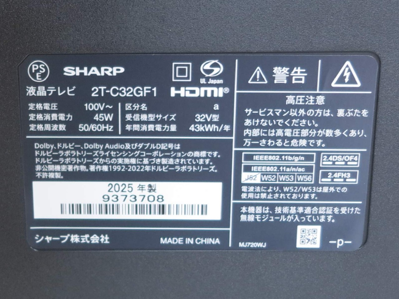 SHARP [USED]u059795 2T-C32GF1 の 商品仕様:
