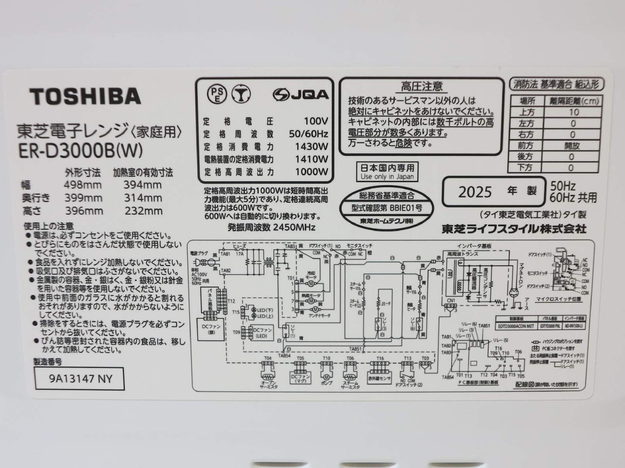 TOSHIBA [USED]u059798 ER-D3000B-W の 商品仕様: