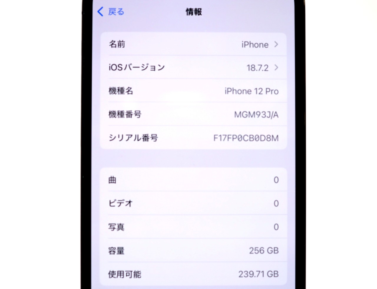 APPLE [USED]u059835 iPhone12 Pro 256GB SIMフリー [グラファイト] の 商品仕様: