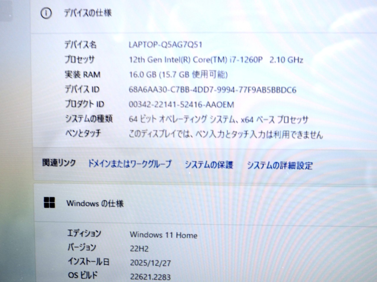 CPU : インテル Core i7 1260P(Alder Lake) 12コア