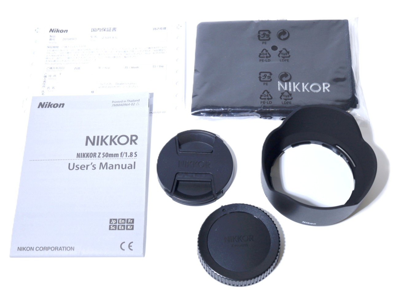 ■レンズキャップ前後1セット ■レンズフード ■ラッピングクロス ■説明書類/保証書