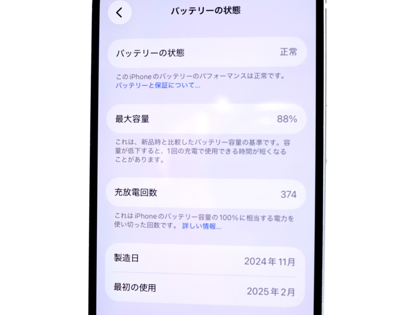 バッテリー最大容量=88%