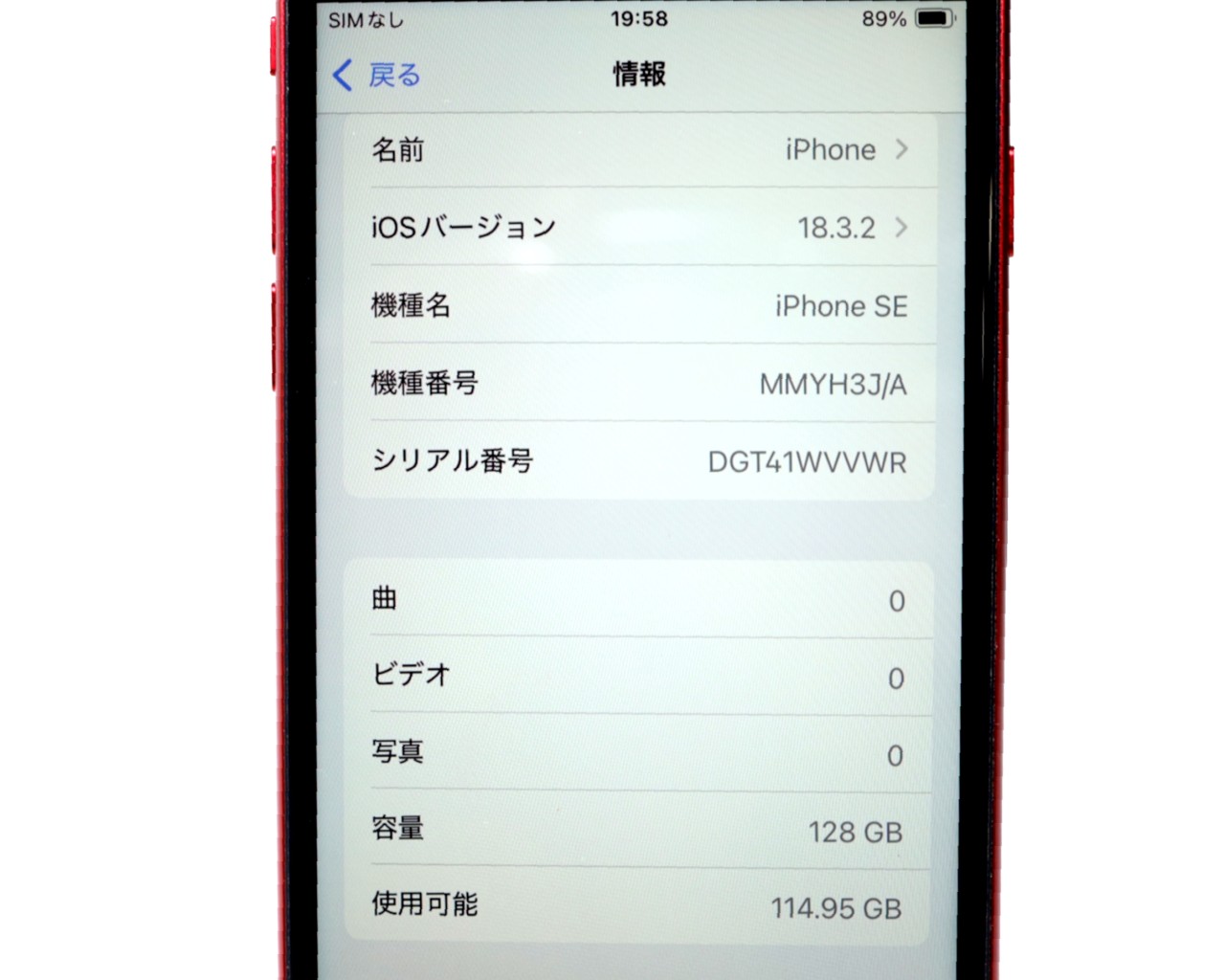 APPLE [USED]u059964 iPhoneSE 3rd 128GB SIMフリー [レッド] の 商品仕様: