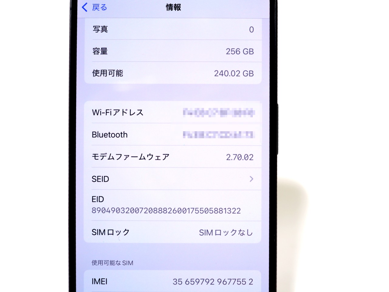 内蔵メモリ : 256GB