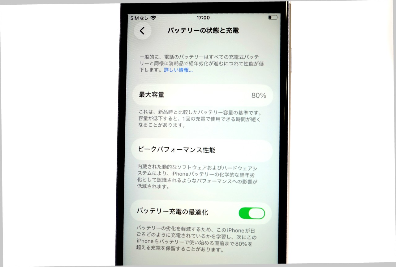 バッテリー最大容量=80%です。