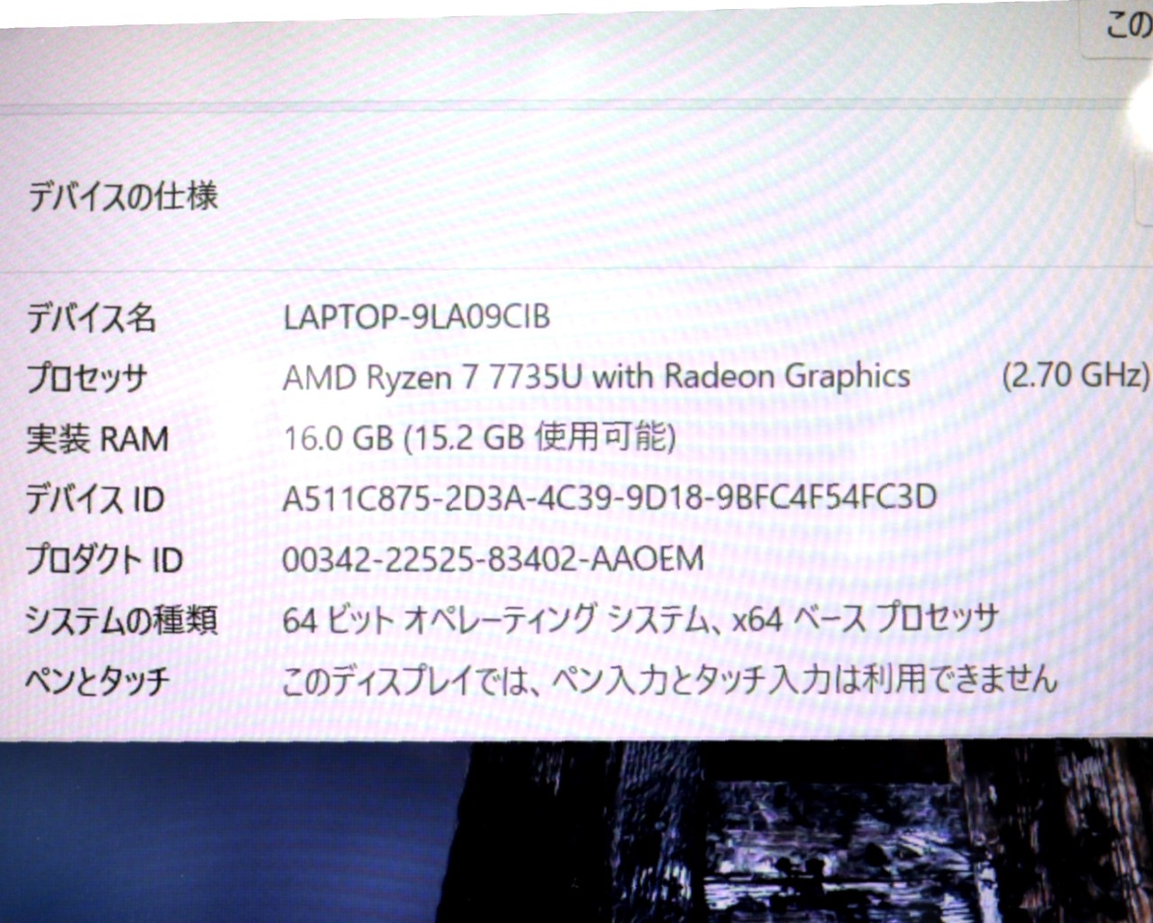 CPU : AMD Ryzen 7 7735U 2.7GHz/8コア