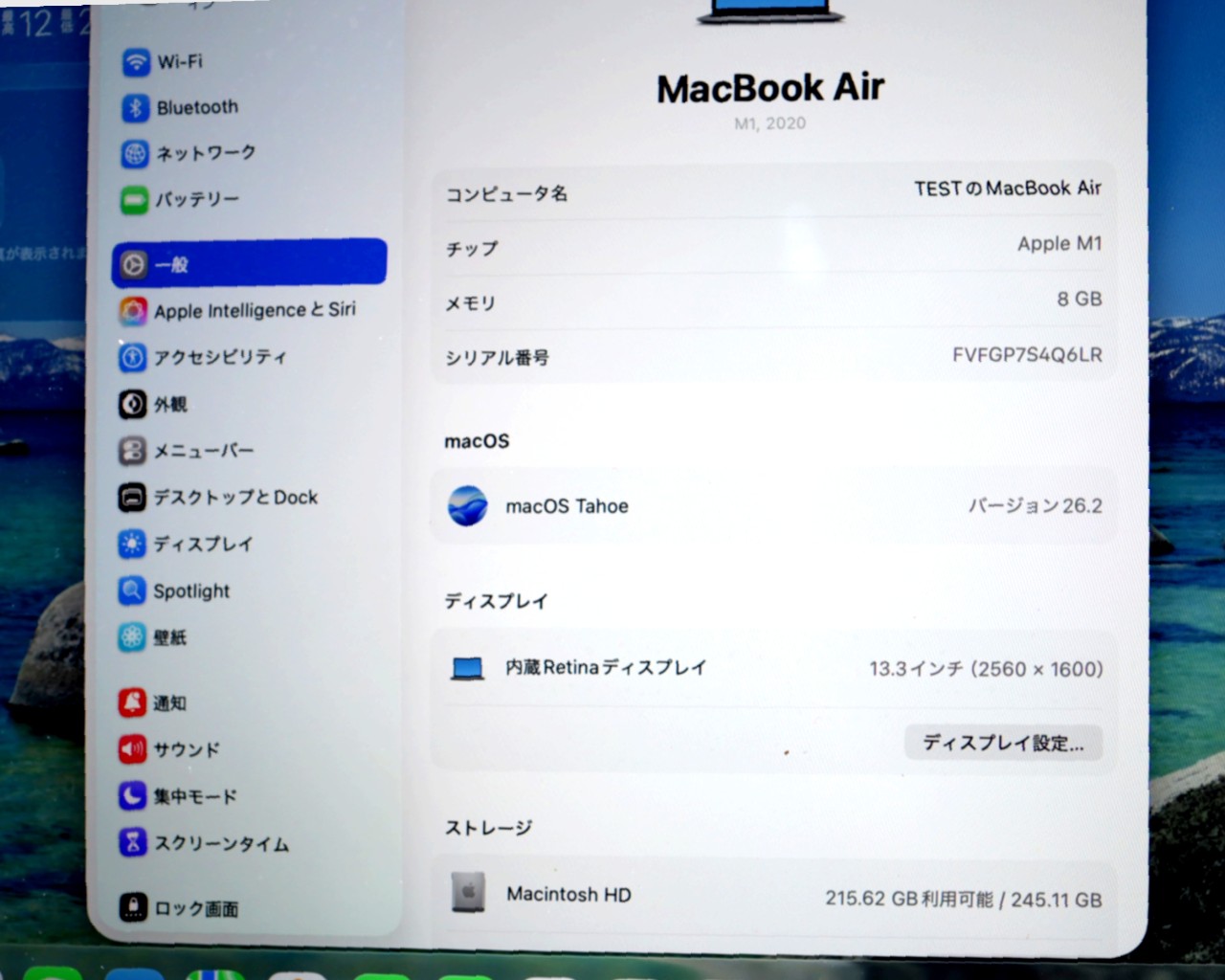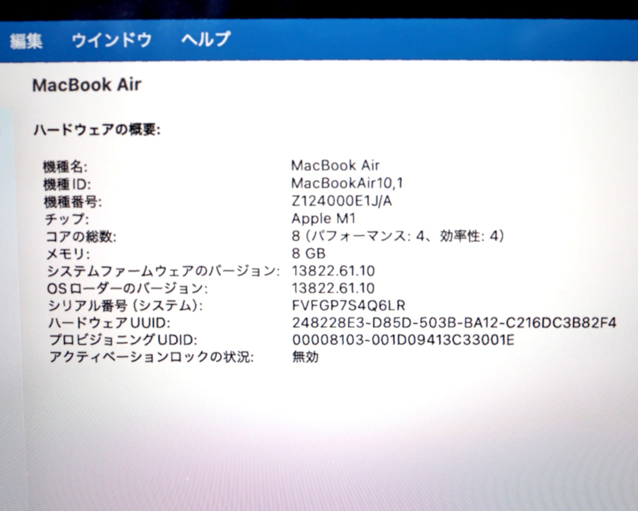 CPU : Apple M1チップ 8コア
