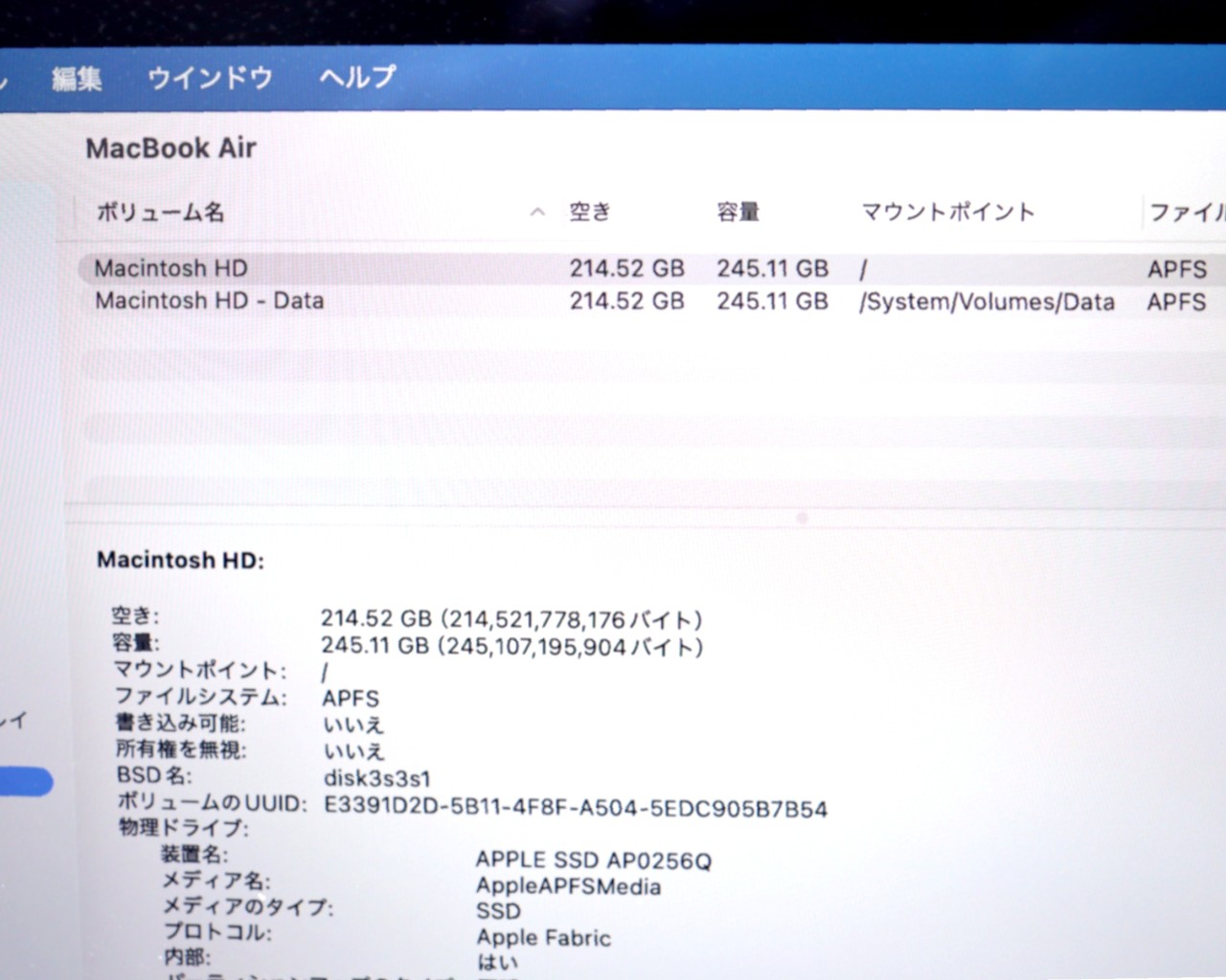 ストレージ容量 : SSD 256GB