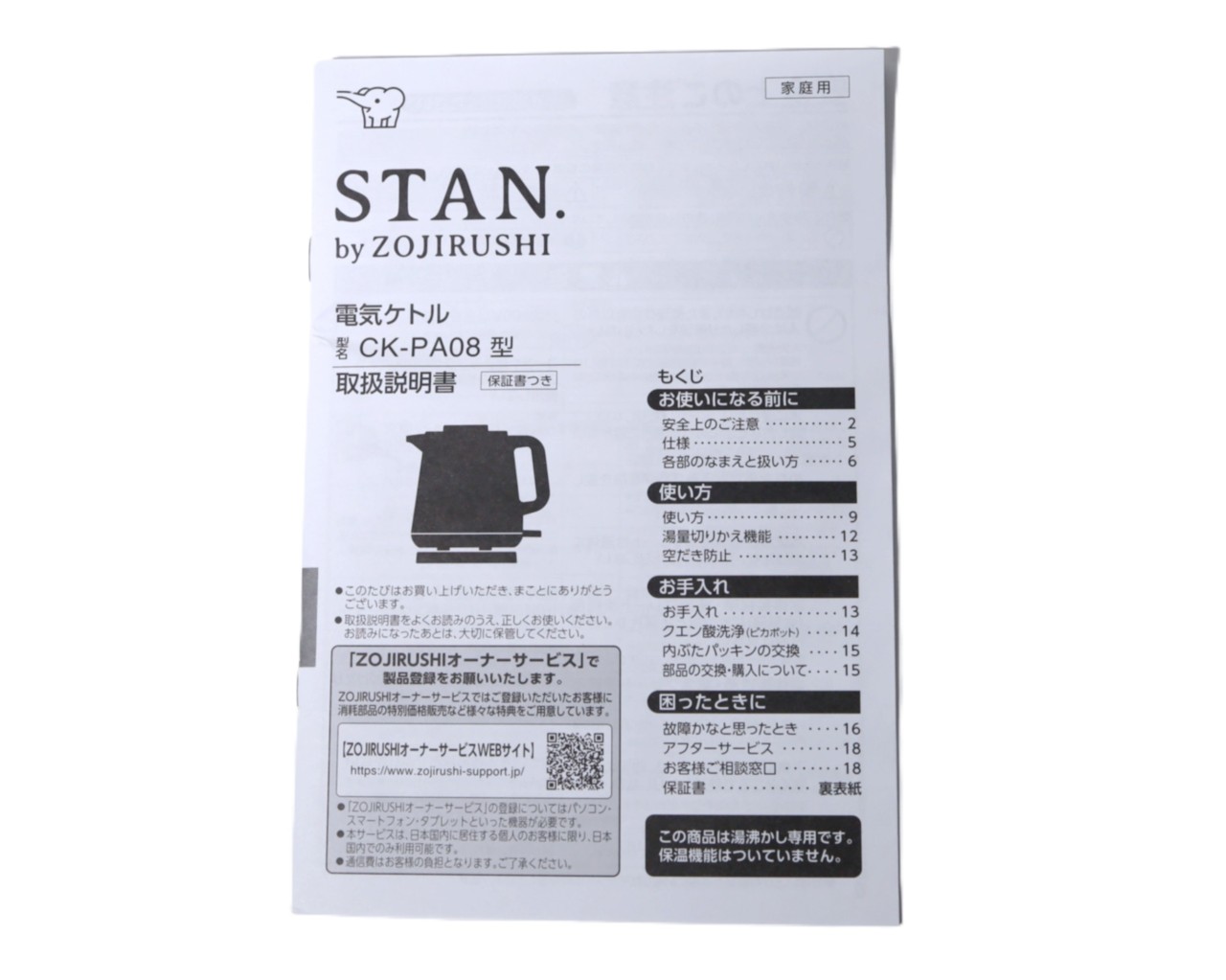 ZOOM [中古]電気ケトル STAN. CK-PA08-WA [ホワイト]