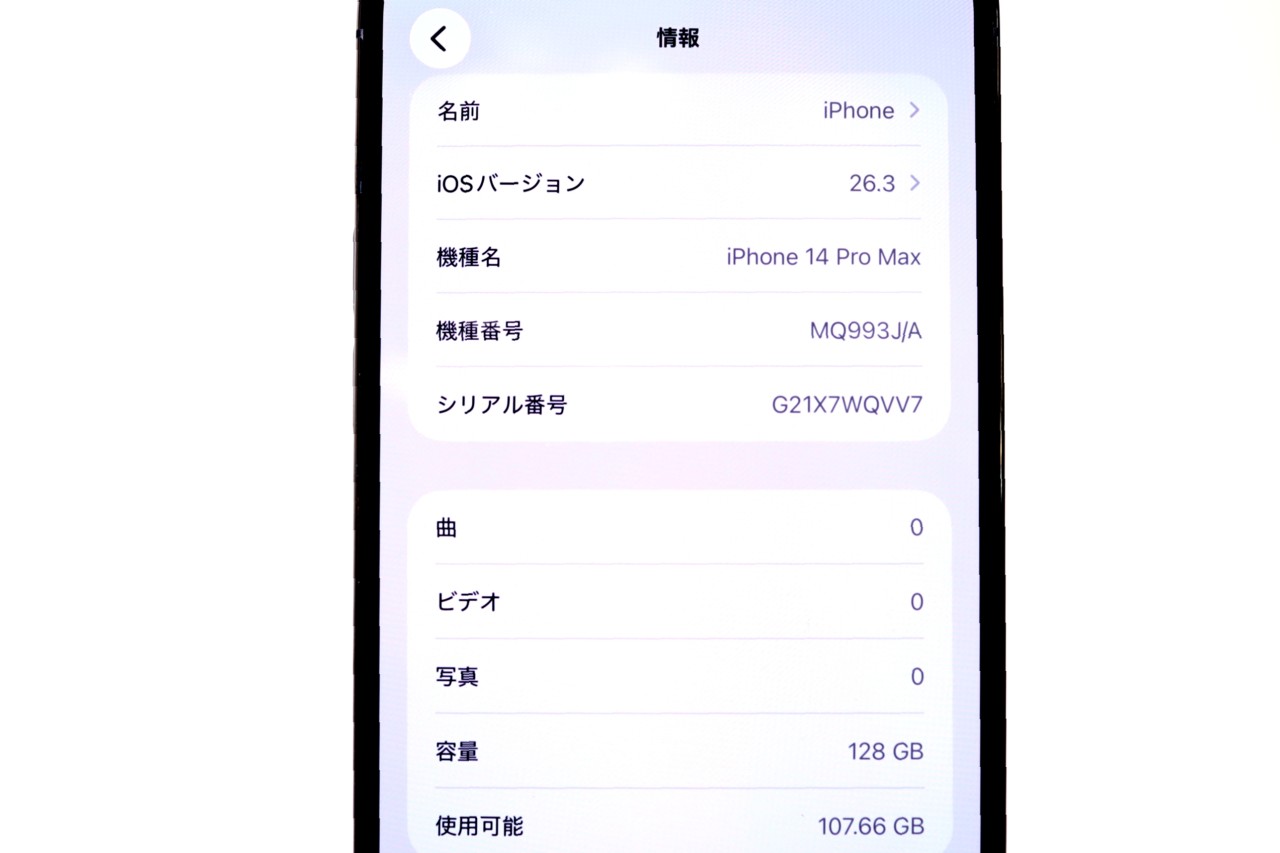 APPLE [USED]u060345 iPhone14 ProMax 128GB SIMフリー [ディープパープル] の 商品仕様: