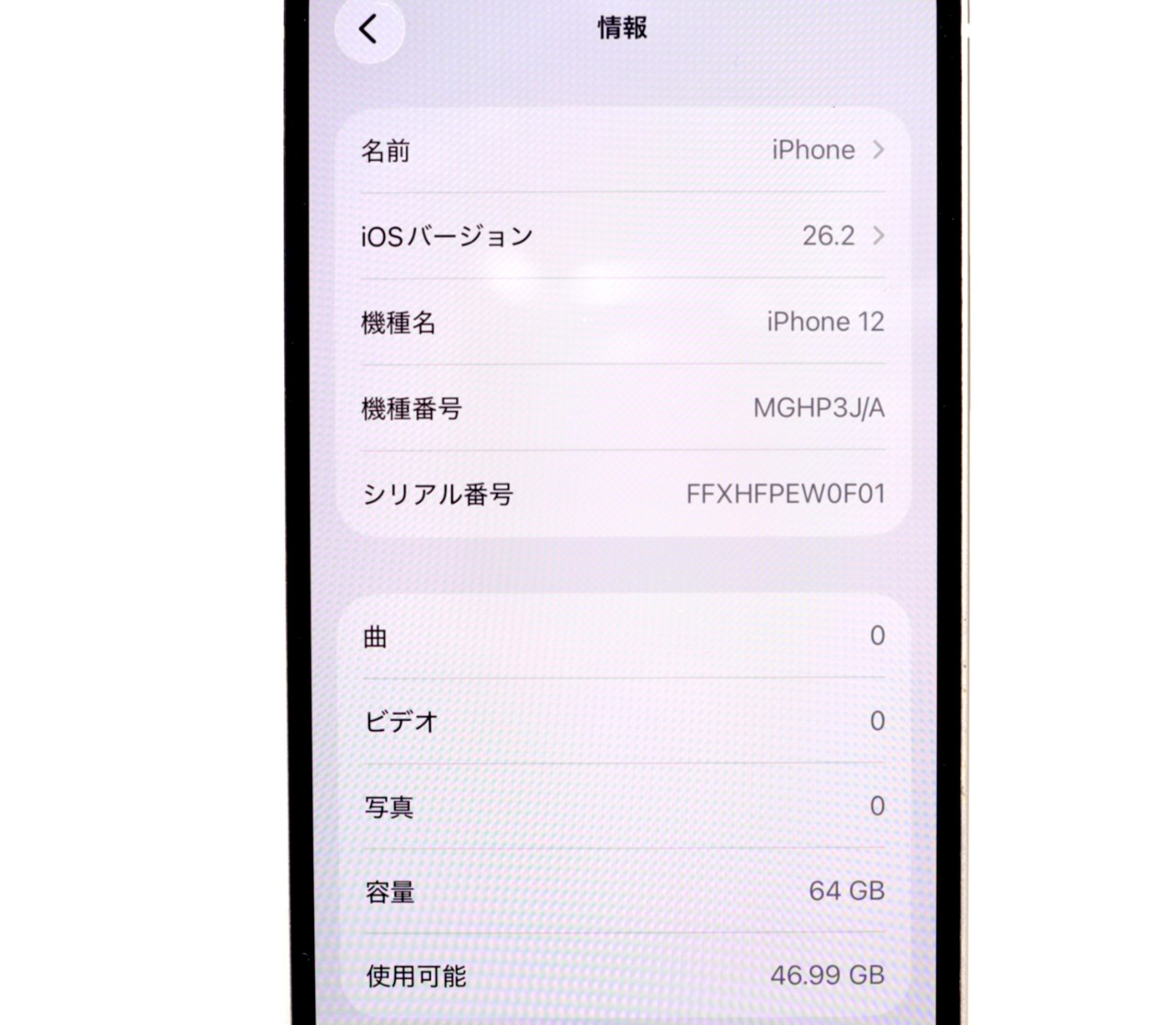 APPLE [USED]u060479 iPhone12 64GB SIMフリー [ホワイト] の 商品仕様: