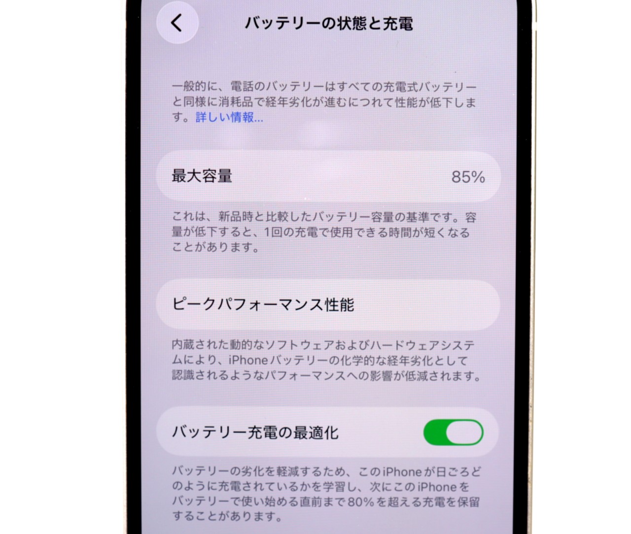 バッテリー最大容量=85%
