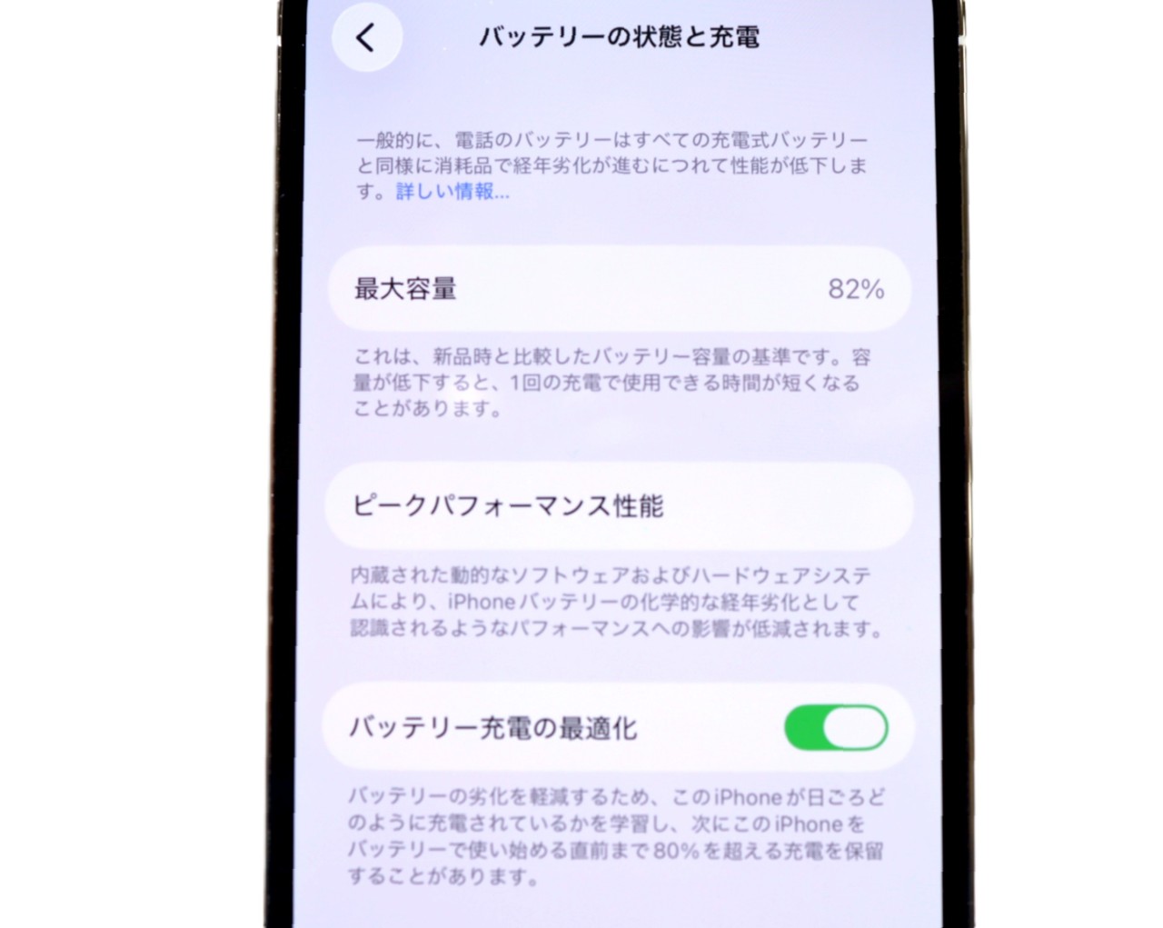 バッテリー最大容量=82%