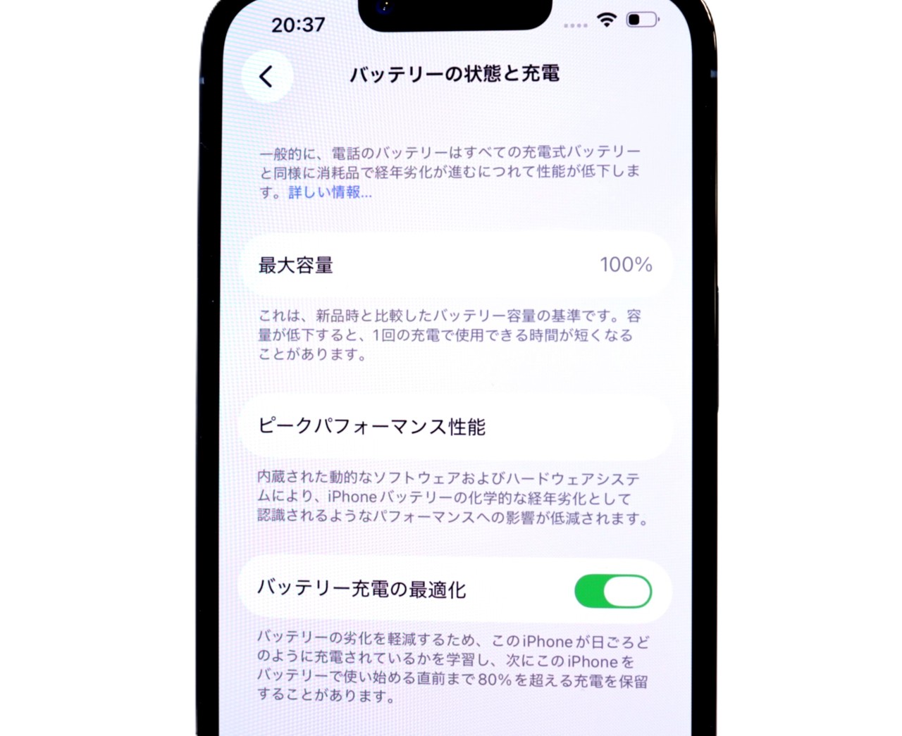 バッテリー最大容量=100%
