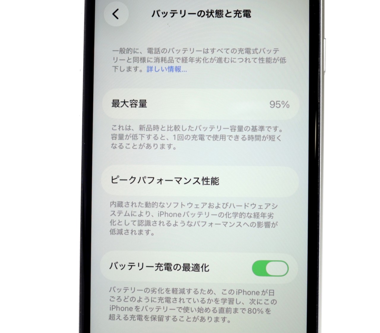 バッテリー最大容量=95%