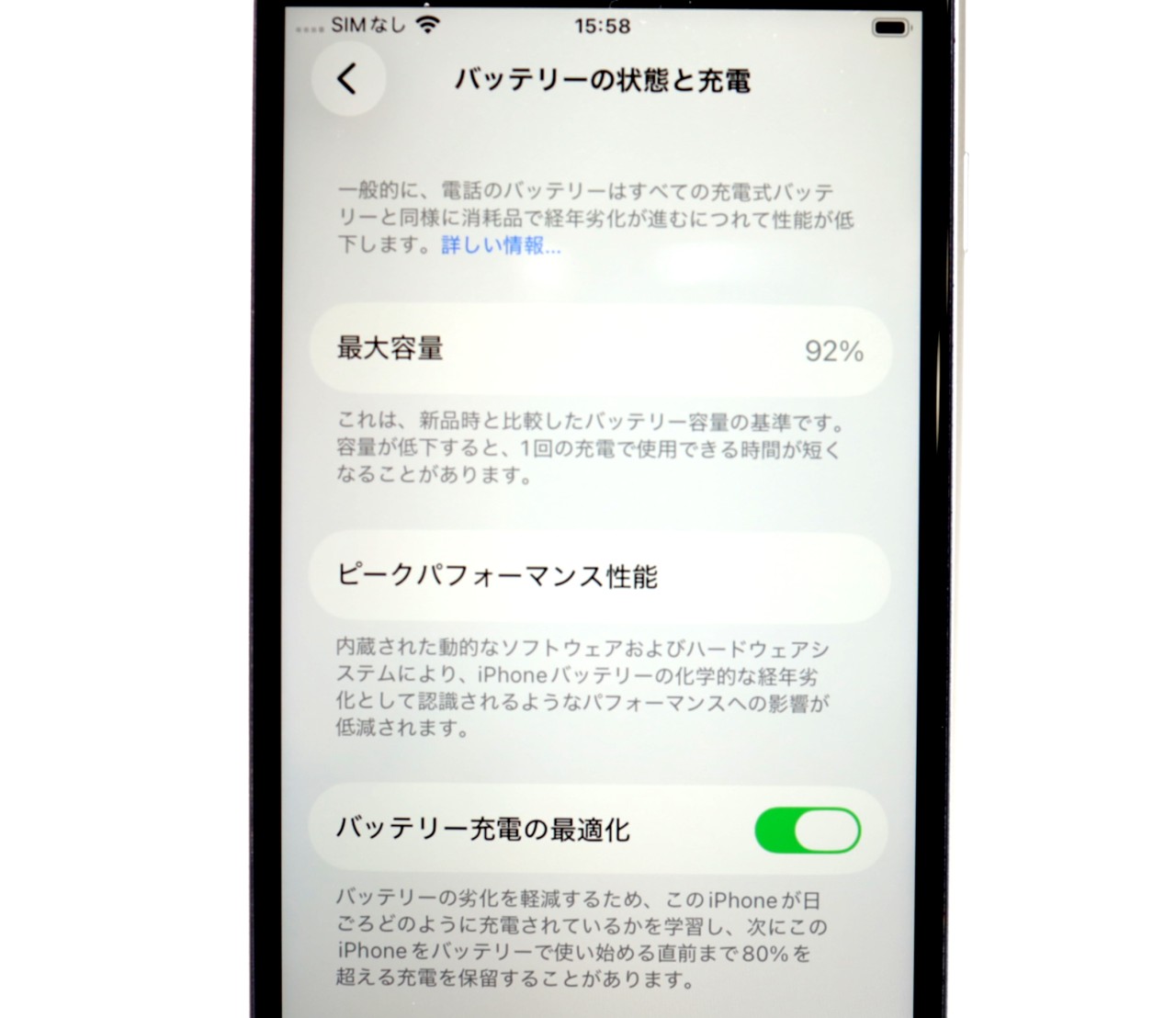 バッテリー最大容量=92%
