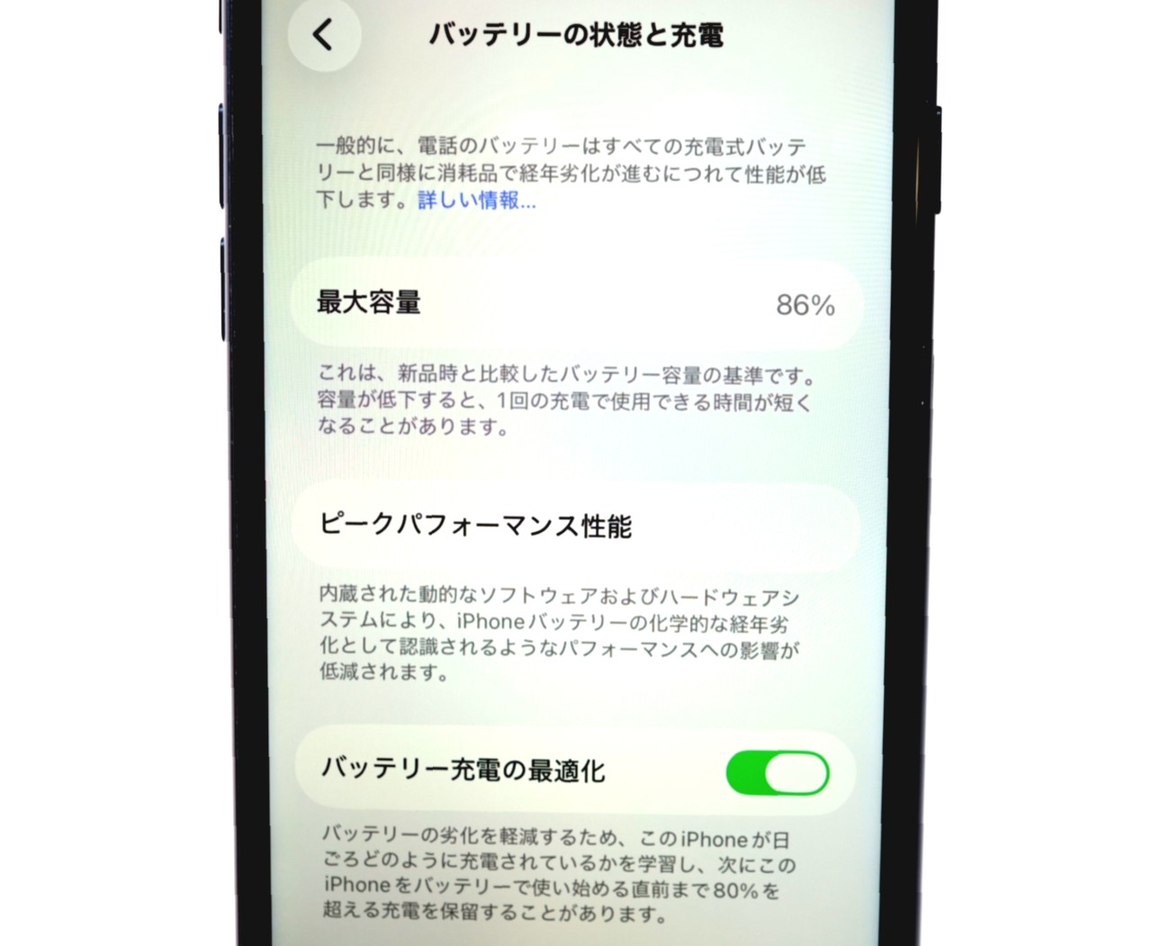 バッテリー最大容量=86%