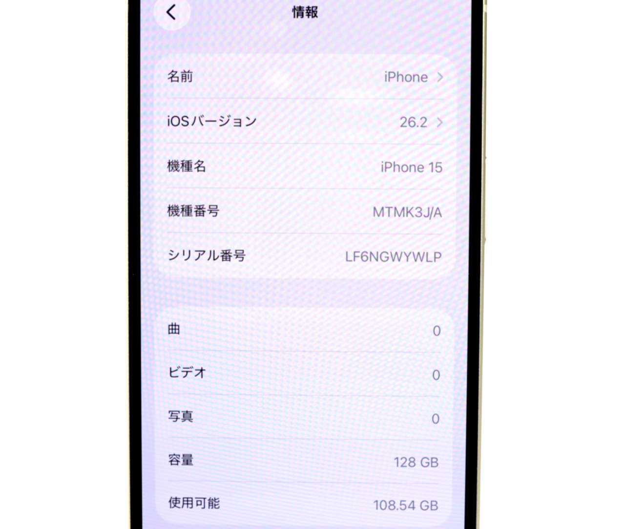 APPLE [USED]u060613 iPhone15 128GB SIMフリー [イエロー] の 商品仕様: