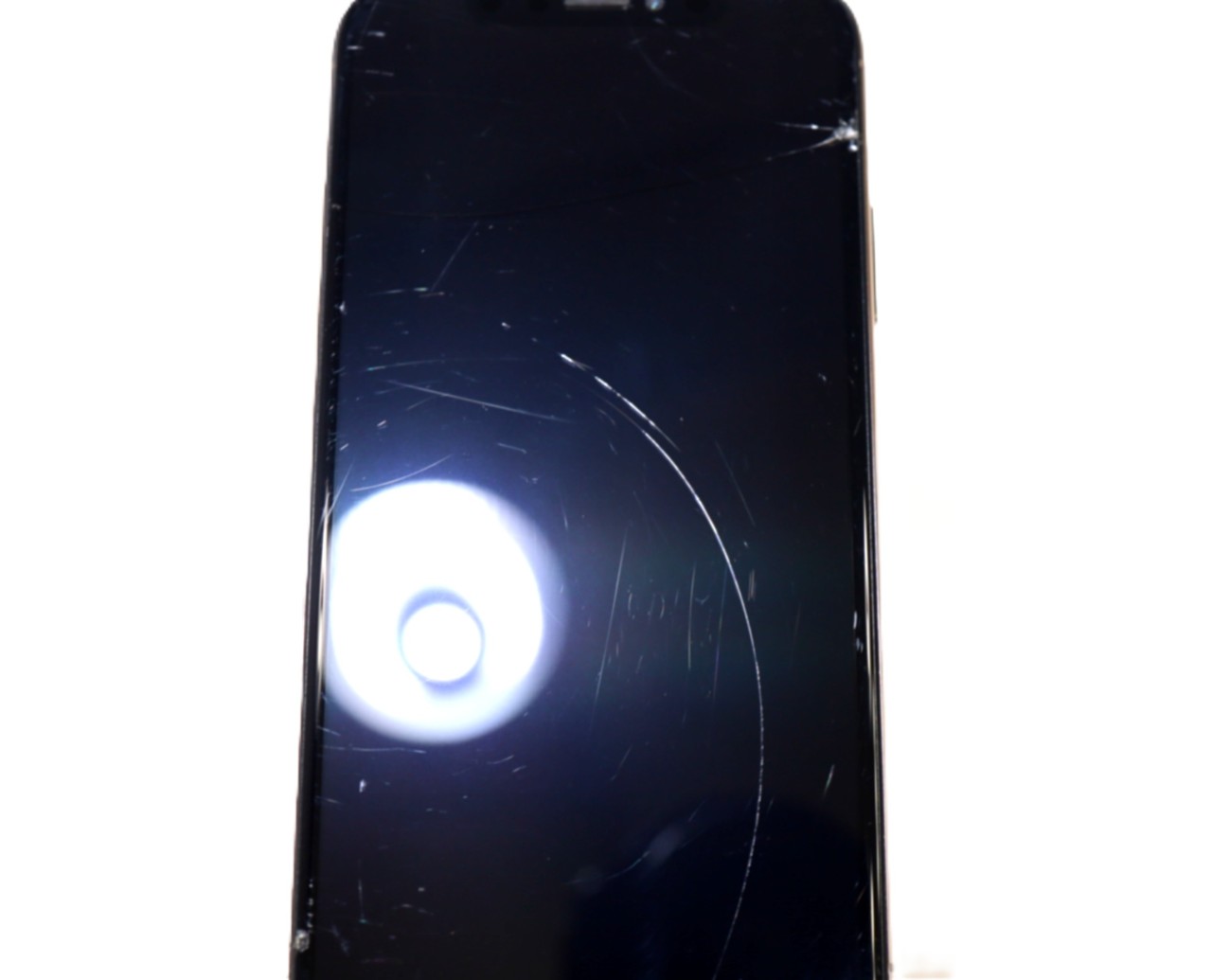 画面右上から反対側にかけて割れています。縦に大きな線傷があります。