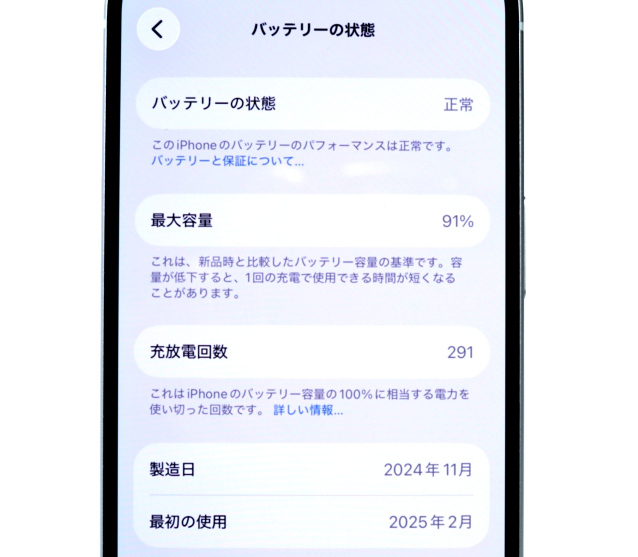 バッテリー最大容量=91%