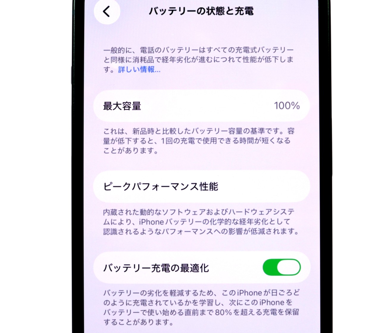 バッテリー最大容量=100%