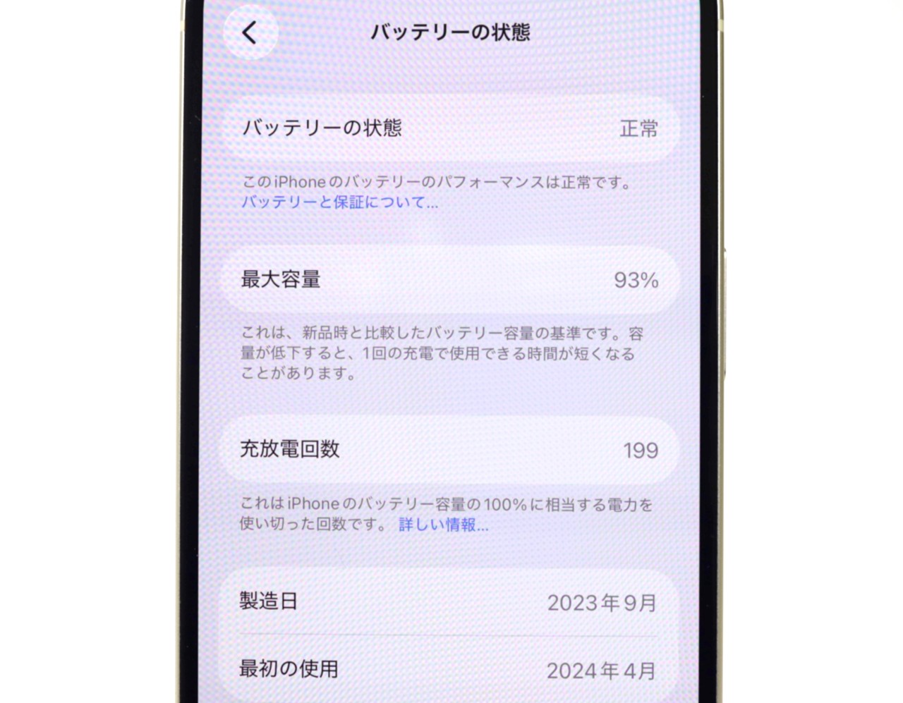 バッテリー最大容量=93%
