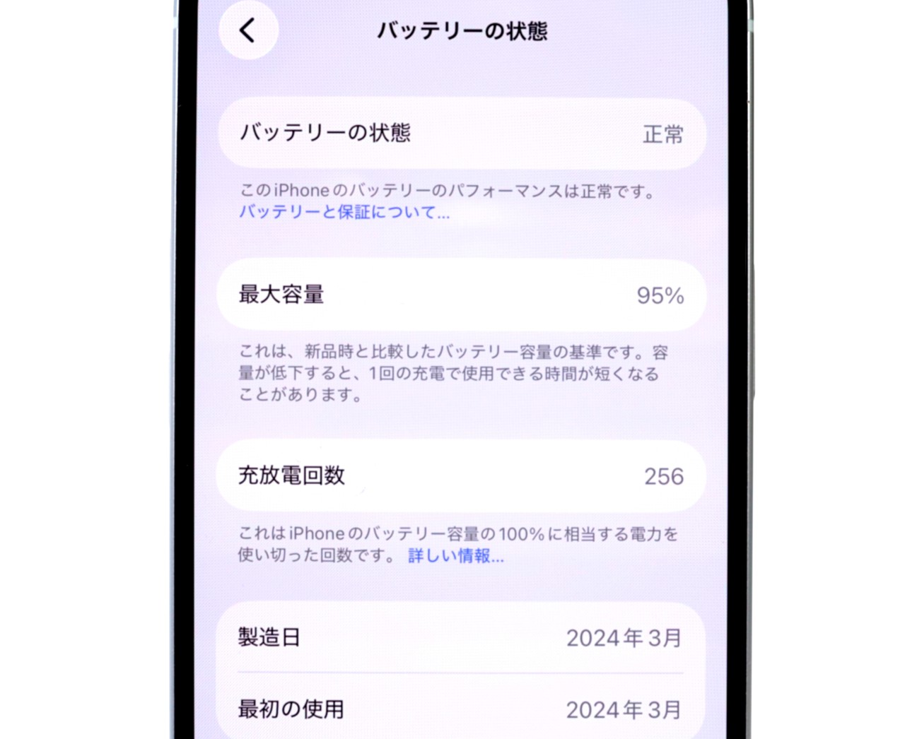 バッテリー最大容量=95%