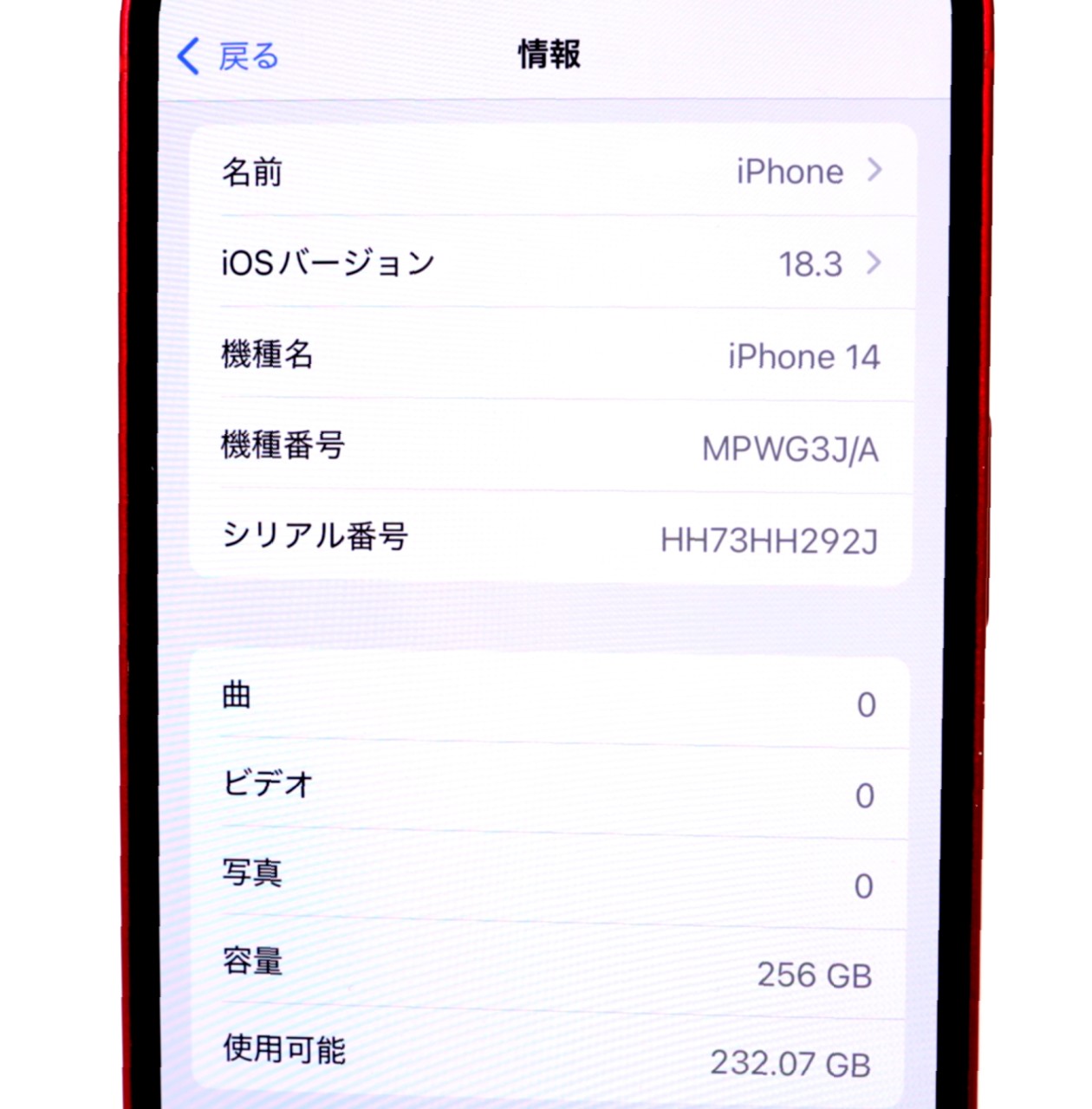 APPLE [USED]u060660 iPhone14 (PRODUCT)RED 256GB SIMフリー [レッド] の 商品仕様: