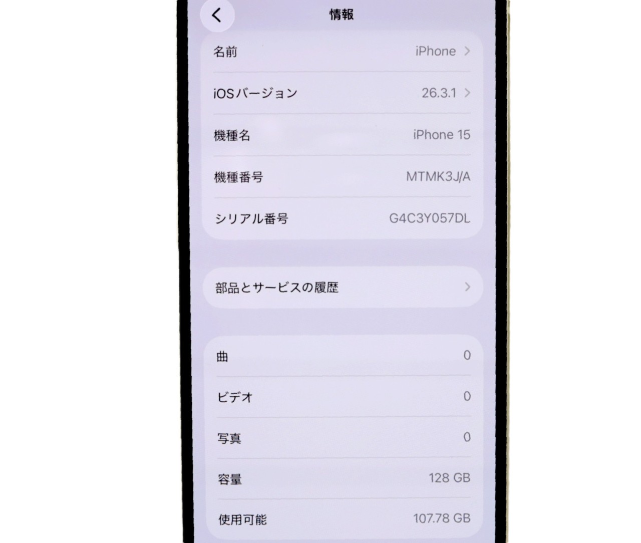 APPLE [USED]u060661 iPhone15 128GB SIMフリー [イエロー] の 商品仕様: