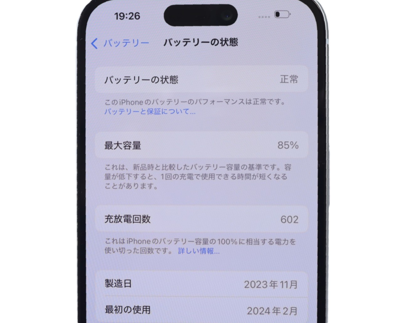 バッテリー最大容量=85%