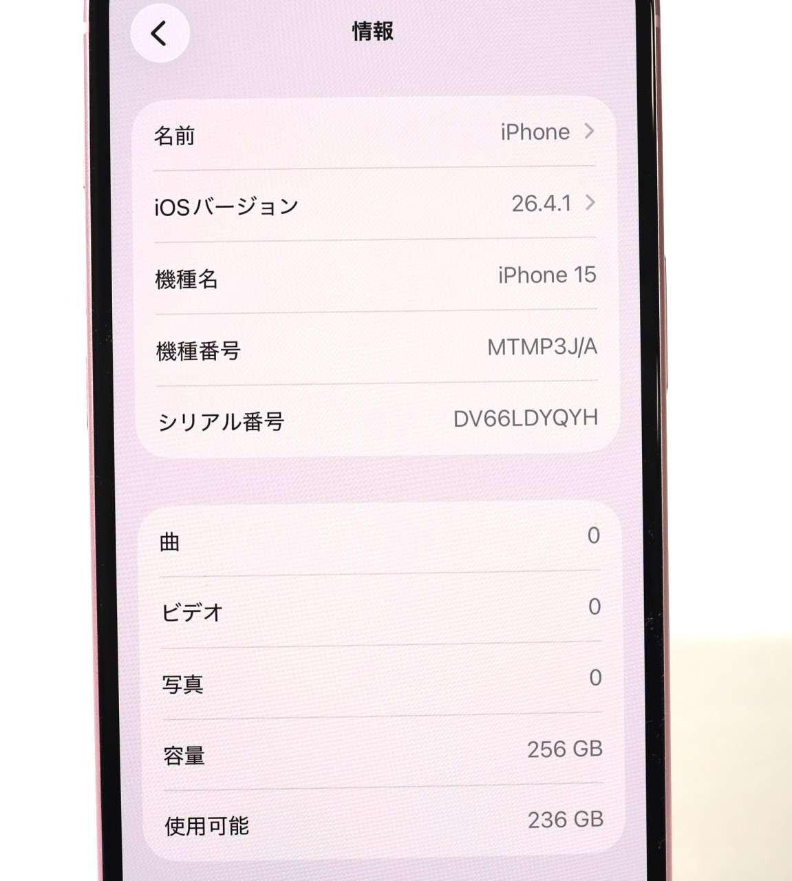 APPLE [USED]u060723 iPhone15 256GB SIMフリー [ピンク] の 商品仕様: