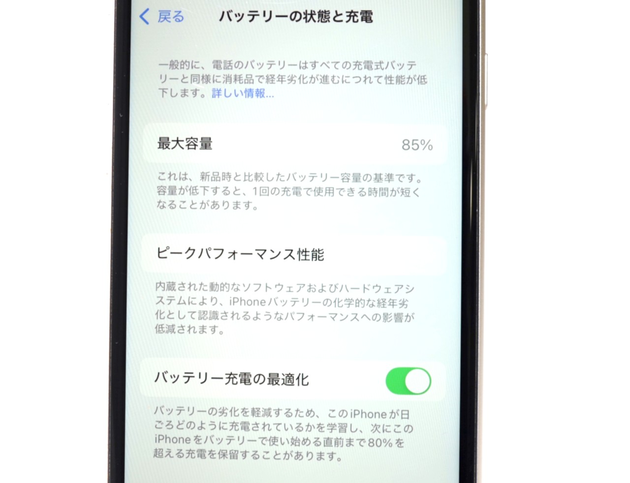 バッテリー最大容量=85%