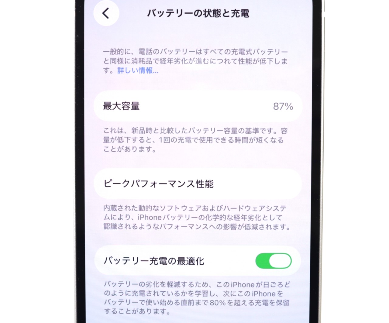 バッテリー最大容量=87%