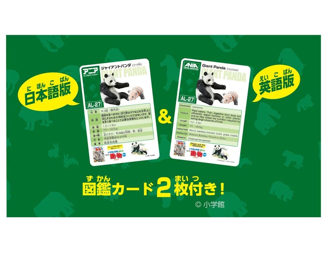 商品内容 : 親パンダ(1)、子パンダ(ピンク)(1)、図鑑カード(日本語)(1)、図鑑カード(英語)(1)