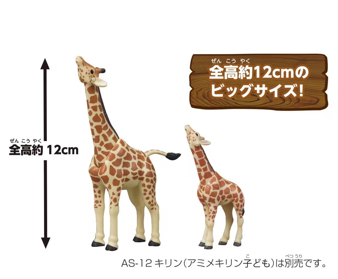 ASシリーズと比べてサイズが大きくなり、さらに首が柔らかく動きます キリン同士が首をぶつけ合って戦う「ネッキング」という習性を再現した遊びができます 頭、首、しっぽが動きます