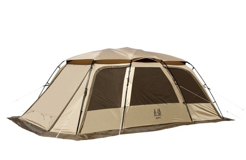 日本の気候に最適な全天候型テント。強度と剛性に優れた、シンプルなフレームレイアウト。全開放可能なメッシュパネルで、解放感抜群です。5人用に吊り下げ式インナーテントを付属、インナーテントを外せば、シェルターとしての使用が可能。ルーフフライ標準装備で、幕体の紫外線劣化、遮光性の向上・結露の軽減に貢献しています。